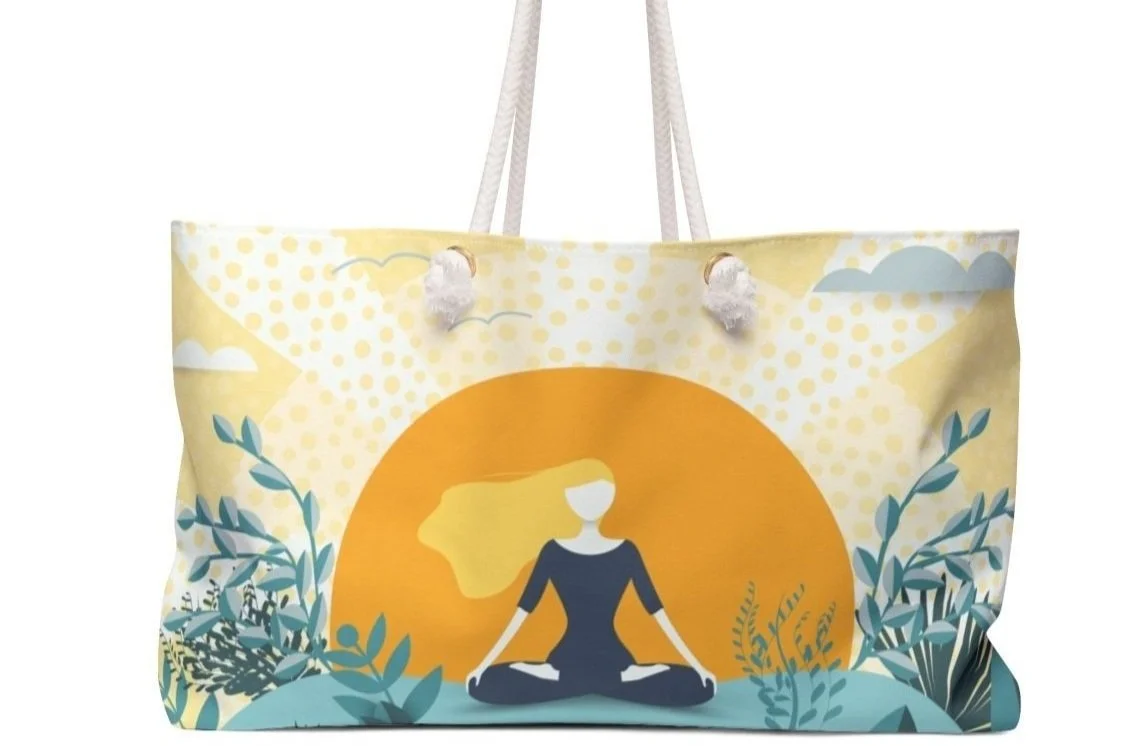 Crafted with a radiant yellow sun motif gracing its background, this bag embodies the essence of summertime bliss. Feel the calming energy emanating from its design, inviting you to immerse yourself in moments of deep relaxation and inner reflection.